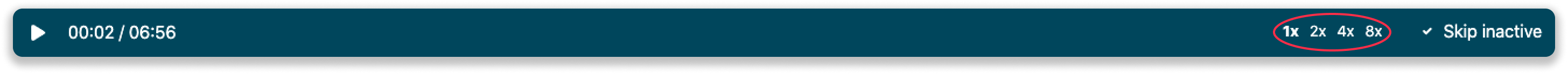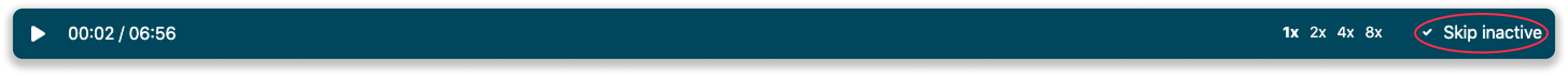 Wenn Sie die Aufnahme im Videoplayer abspielen, dann erscheinen in der rechten unteren Ecke verschiedene Schaltflächen. Mit der Schaltfläche 'Inaktive Momente überspringen' können Sie alle Momente überspringen, in denen der Besucher inaktiv war. Bei einem inaktiven Moment handelt es sich um Momente, in denen sich der Besucher nicht auf Ihrer Website aufhält.