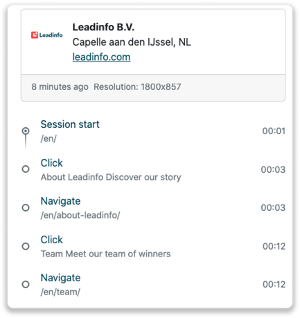 Mit Leadinfo erhalten Sie nicht nur einen Überblick über Ihre Website-Besucher, sondern können auch detaillierte Browsing-Aktivitäten der Besucher einsehen. So können Sie Nutzer mit Kaufabsichten schnell erkennen.