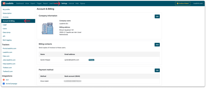 Das Ändern oder Aktualisieren von Ihren Rechnungsdaten geht im Leadinfo-Portal schnell und einfach! Folgen Sie einfach den folgenden Schritten: