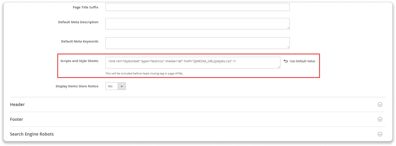 Schritt 4: Erweitern Sie im Tab „Other Settings“ den Abschnitt HTML-Kopfzeile und fügen Sie den Leadinfo-Trackingcode in das Feld „Scripts and Stylesheets“ ein.