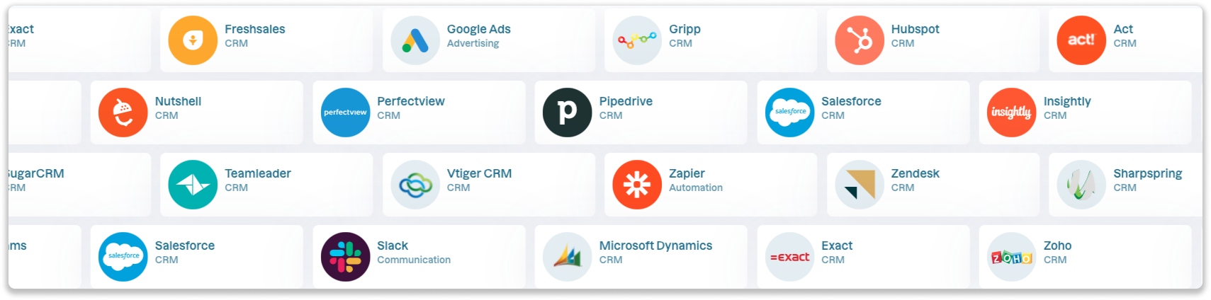 Leadinfo bietet mehrere Integrationen, mit denen Sie Leadinfo zum Beispiel mit Ihrem CRM-System integrieren können. Für jede Integration steht Ihnen eine Anleitung zur Verfügung, mit der Sie die Verknüpfung im Handumdrehen eingerichtet haben. Um herauszufinden, wie es geht, klicken Sie unten auf die entsprechende Integration: