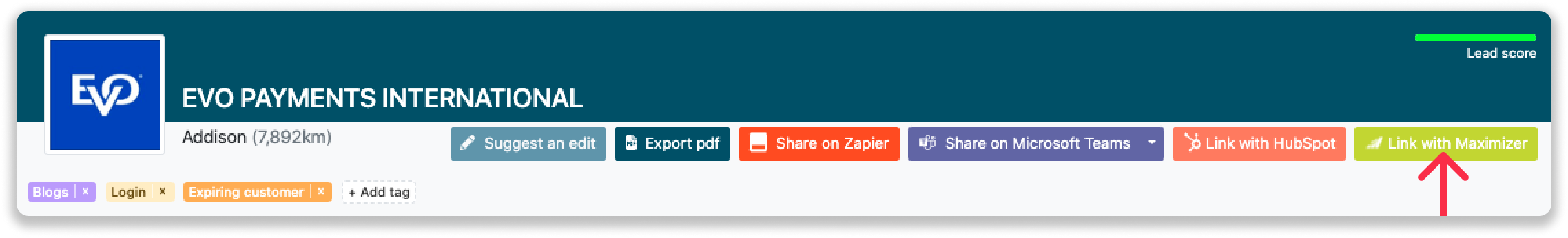Gut zu wissen 📝 Wenn Sie ein Unternehmen verbinden, sendet Leadinfo den letzten Besuch an Maximizer. Zukünftige Besuche werden immer geteilt.