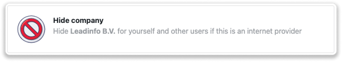 Verbergen Sie ein Unternehmen für sich und andere Nutzer, wenn Sie feststellen, dass es sich bei dem Website-Besucher um einen Internet-Provider handelt.
