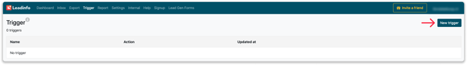1. Navigieren Sie im Leadinfo-Portal zu 'Trigger' und klicken Sie auf 'neuer Trigger' um einen neuen Trigger zu erstellen.