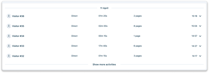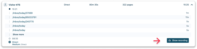 Discover how companies interact with your website. With screen recording, you will see the detailed browsing activity of your website visitors. Click on the button “Show recording”, next to every user session, and see a playback of the company's visit.