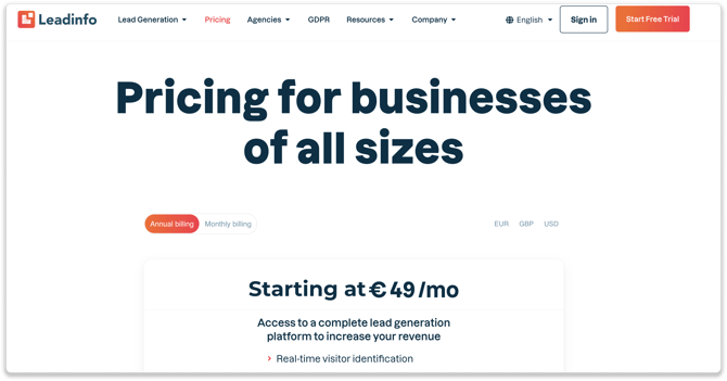 It is also possible to associate a time duration with the general interest in a page. For example, you might find it more relevant when a company has not only visited the pricing page but has also spent at least 30 seconds on it. This way, you know that the visitors have actually read through the content on the pricing page.